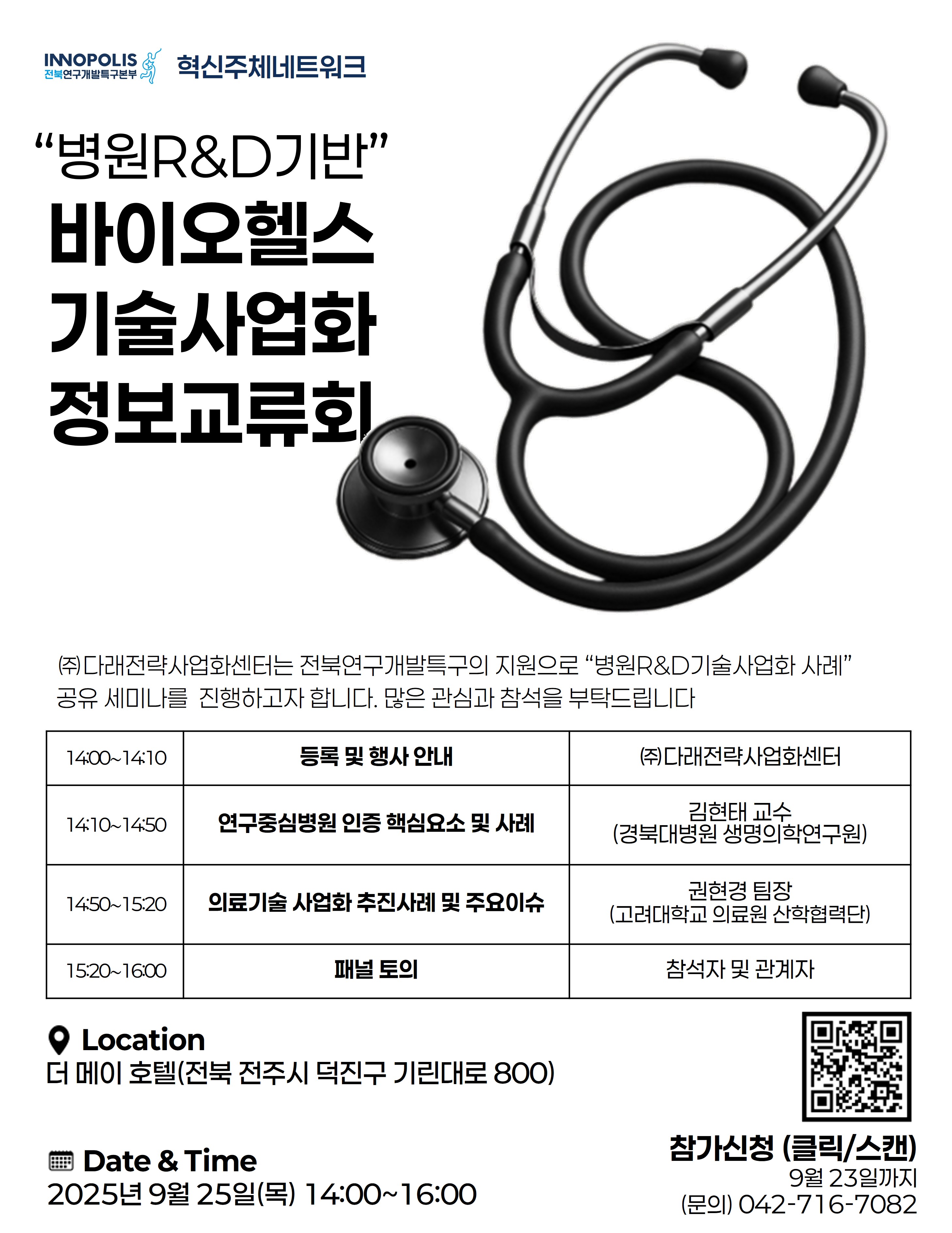 | [대덕연구개발특구] INNO CONNECT DAY – 바이오헬스/첨단의료 유망기술 설명회(9/25) (0) | 2025.09.16 |