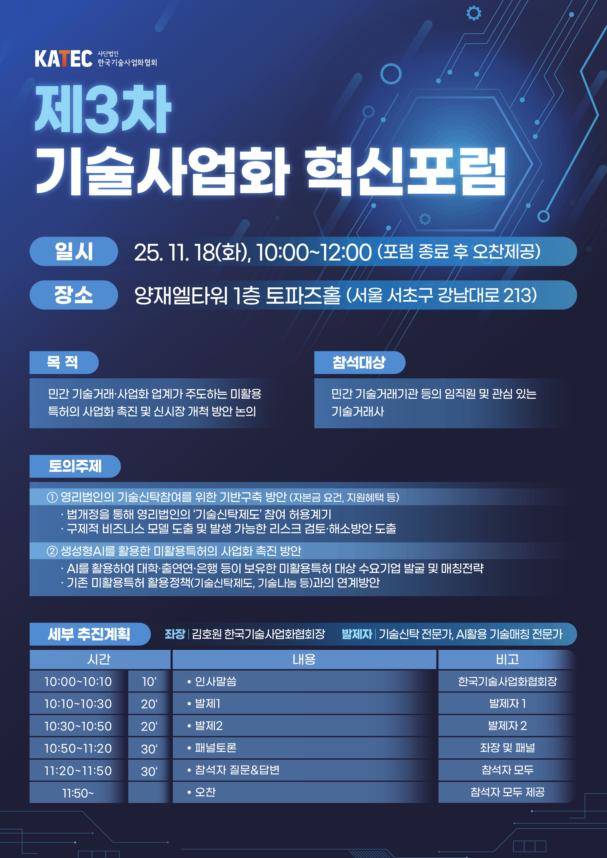 | [LIFT IP 2025] 2025 지식재산 사업화 컨퍼런스에 초대합니다! (0) | 2025.11.10 |