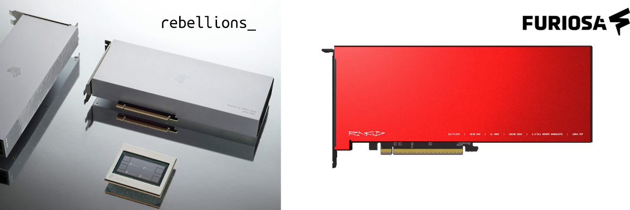 <좌> 리벨리온 ATOM™-Max , <우> 퓨리오사에이아이 Furiosa RNGD - Gen 2