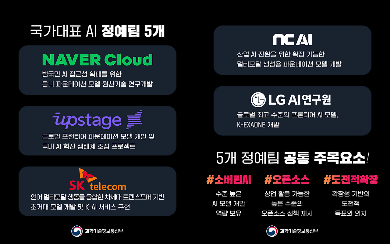 특히, 이 두 기업은 과학기술정보통신부가 추진하는 ‘독자 AI 파운데이션 모델 개발 사업’의 최종 5개 정예팀에 선발됨으로써 기술력을 입증했습니다. 업스테이지는 이 정예팀 중 유일하게 스타트업으로서 컨소시엄을 주관하여 참여하고 있으며, 셀렉트스타는 SK텔레콤이 주관하는 컨소시엄에서 AI 모델의 신뢰성 및 안정성 평가와 고품질 데이터 구축 기술 분야에서 핵심 역할을 맡은 것으로 알려져 있습니다. 이 외에도 에티포스(통신), 임팩티브에이아이(데이터) 등 해당 분야의 잠재력 있는 스타트업들이 투자를 유치하며 시장의 관심을 이어갔습니다.