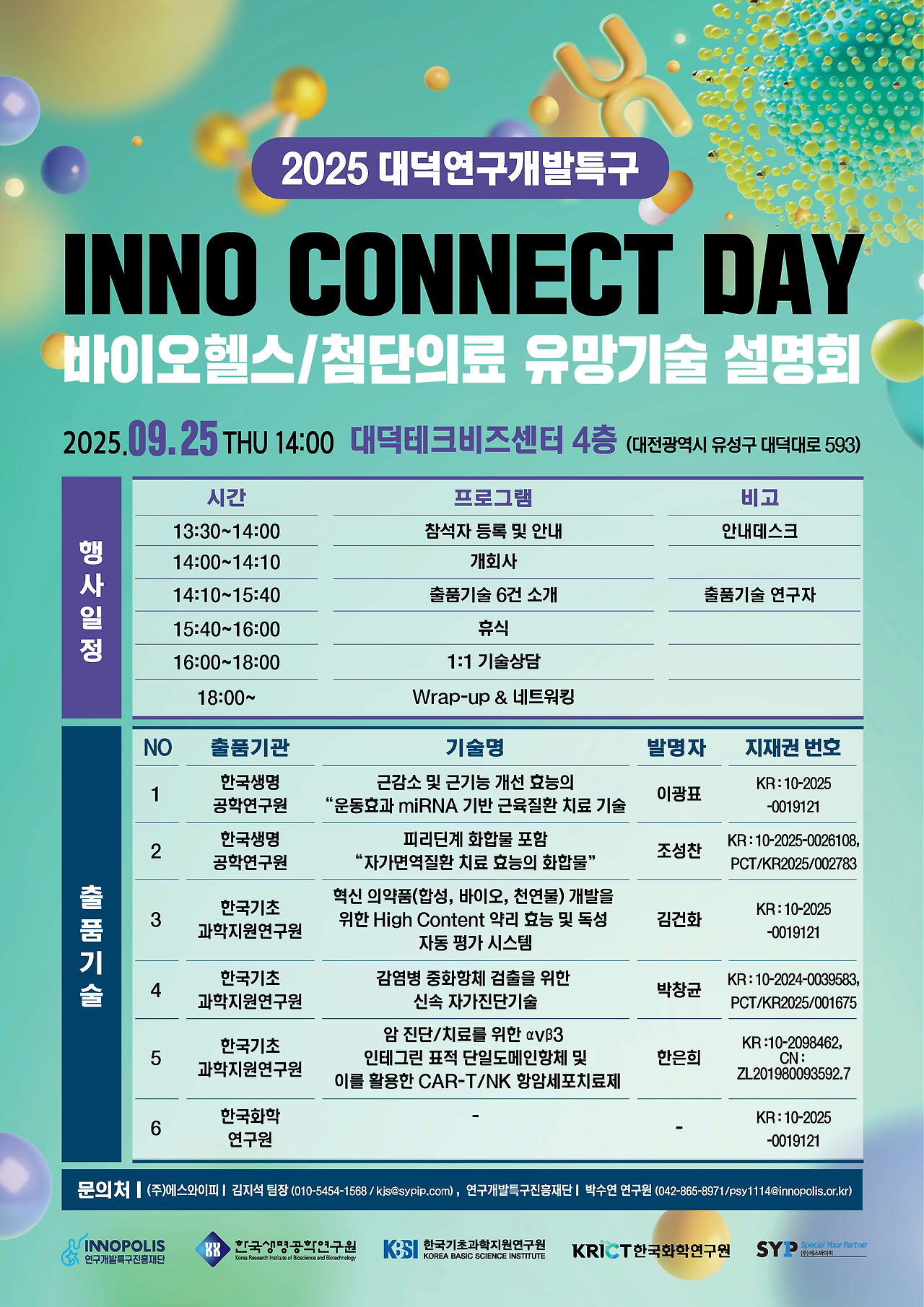 [대덕연구개발특구] INNO CONNECT DAY – 바이오헬스/첨단의료 유망기술 설명회(9/25)