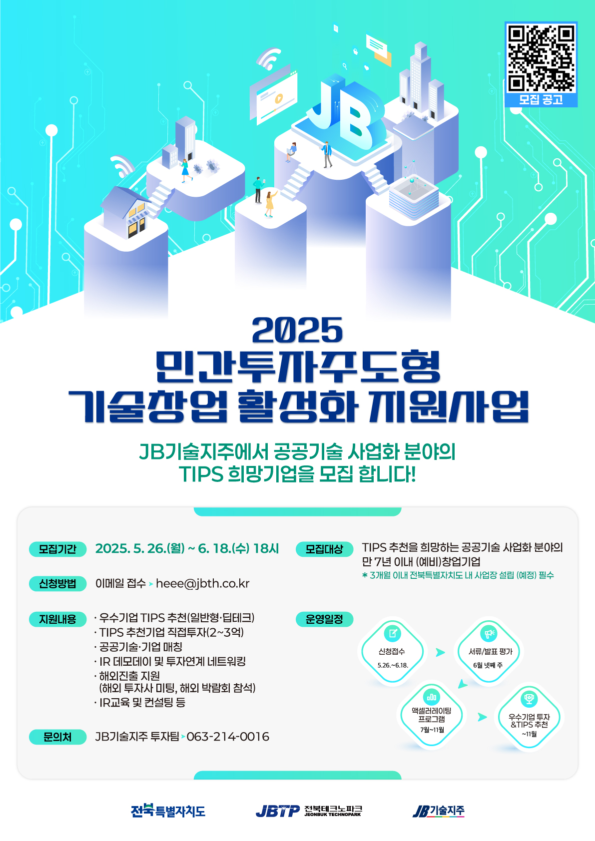 [JB기술지주] 2025년 민간투자주도형 기술창업 활성화 지원사업 참여기업 모집 공고