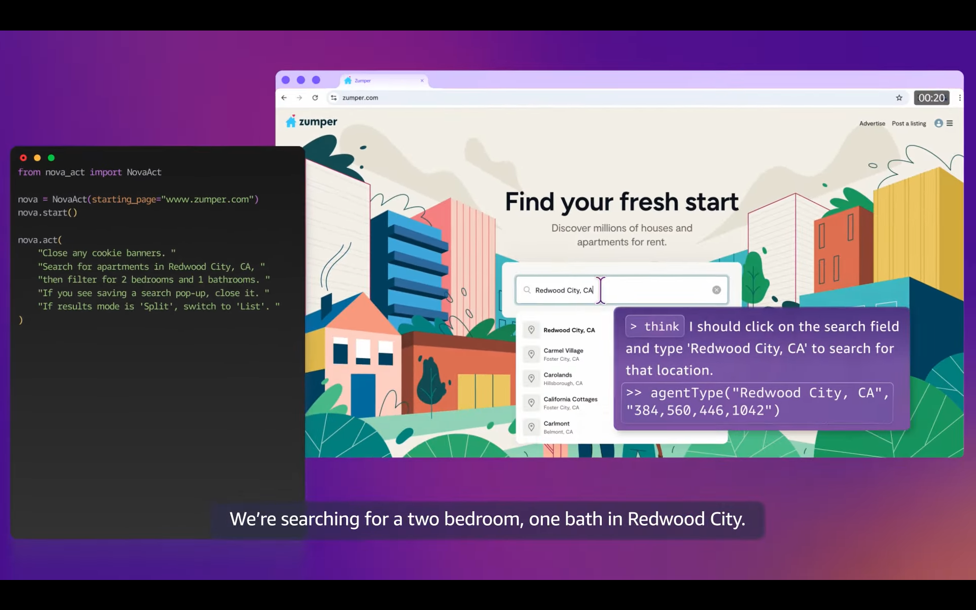 Nova Act는 웹 브라우저 상에서 실시간으로 다양한 작업을 수행할 수 있는 AI 에이전트로, 단순 검색은 물론 구매, 일정 기반 작업 실행까지 가능하도록 설계되었습니다. 예를 들어, Nova Act는 지도 서비스를 활용해 물류센터와 고객 사이의 최단 배송 경로를 분석하거나, 특정 시간대의 교통 상황을 고려해 배송 일정을 재조정할 수 있습니다. 이처럼 Nova Act는 복잡한 조건 하에서도 다단계 의사결정을 자율적으로 수행하는 에이전틱 AI로, 기존의 정적 시스템과는 비교할 수 없는 민첩성과 판단력을 제공합니다.