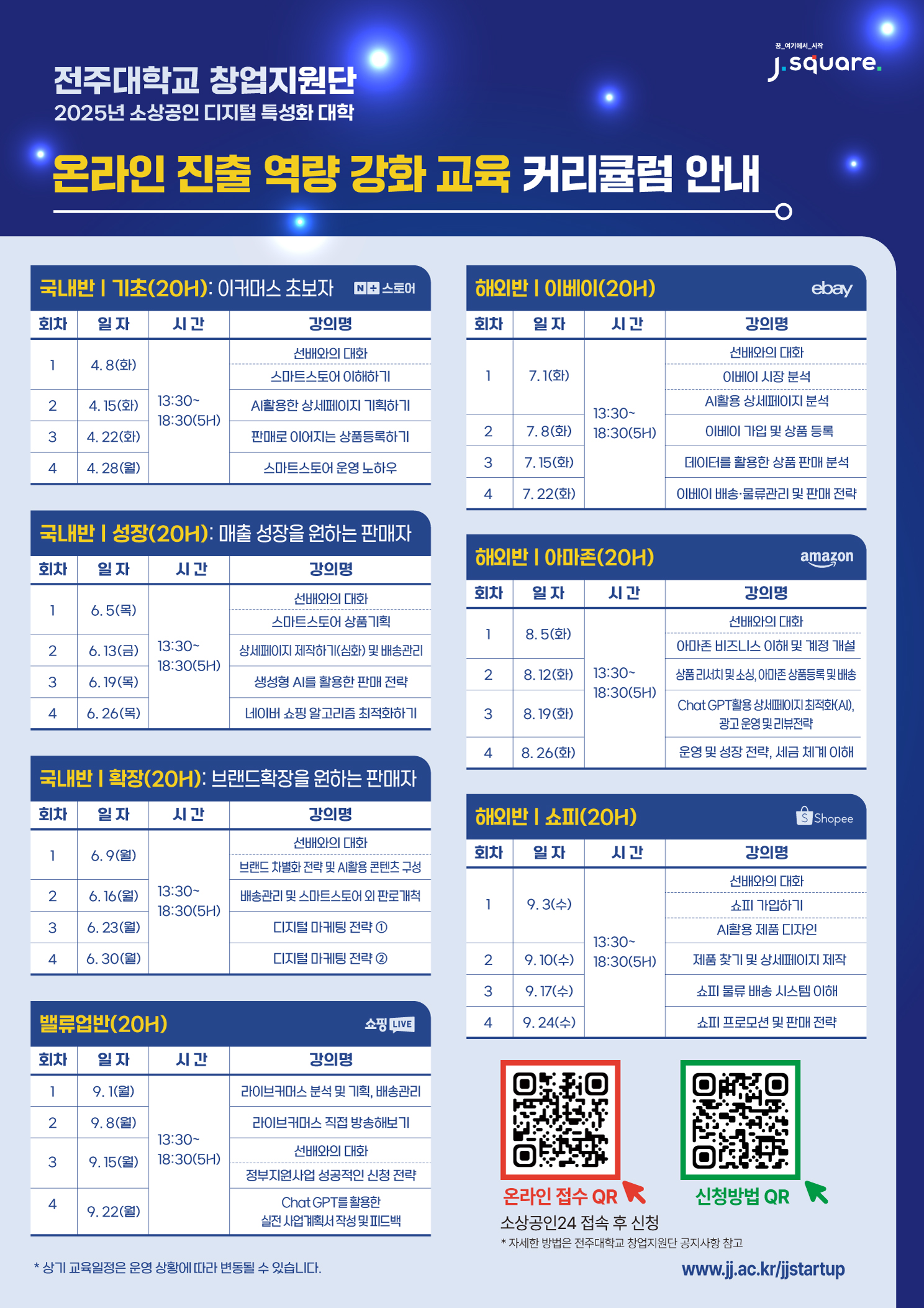 ※ 상세일정은 창업지원단 홈페이지(jj.ac.kr/jjstartup)에서 커리큘럼 참고
